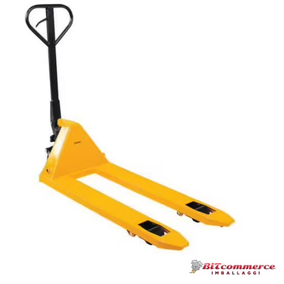 Il transpallet manuale è un prodotto altamente efficiente e versatile, progettato appositamente per soddisfare le esigenze logistiche, di trasporto, industria e produzione Le ruote in poliuretano che equipaggiano il nostro transpallet sono della stessa tipologia utilizzata nei carrelli “uomo a bordo”. Questo significa che sono progettate per essere estremamente resistenti all’uso intensivo e per assorbire efficacemente eventuali urti, silenziosi e scorrevoli Il transpallet è dotato di pompa monoblocco e valvola di massima pressione per evitare danni strutturali, verniciatura con polvere di poliestere a 250° che garantisce la massima resistenza all’usura e agli agenti atmosferici Transpallet con portata massima di 2500 Kg